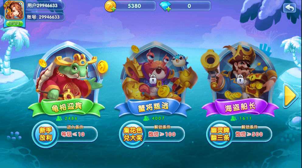 3、精致画风全面升级,精美画面超越视觉极限;梦幻场景炫酷特效,海底世界极致体验;更有神秘Boss、创新赛事、升级福利等你解锁,带你体验不一般的畅爽捕鱼新乐趣。