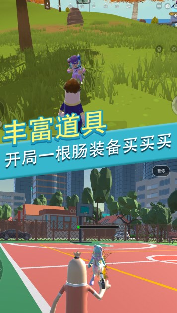 1、Q版香肠人角色:化身萌趣香肠人,百人同场竞技,存活至最后。