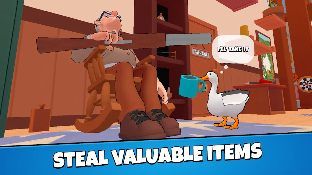 我是鹅是一款很好玩的冒险解谜的游戏,游戏能够有众多的互动,总能够满足玩家的恶作剧心情,喜欢玩模拟游戏的伙伴们赶紧来下载体验一下吧,游戏以3D卡通版向大家呈现了一个沙盒世界游戏,玩家可以和很多东西进行互动,不同的搞怪,惹人类生气,玩家在游戏中将扮演被家养的一只鹅,在别墅里面到处捣蛋的故事,玩家要记住,在捣蛋之后赶紧跑,不然被人类抓住了结局是非常不好的。